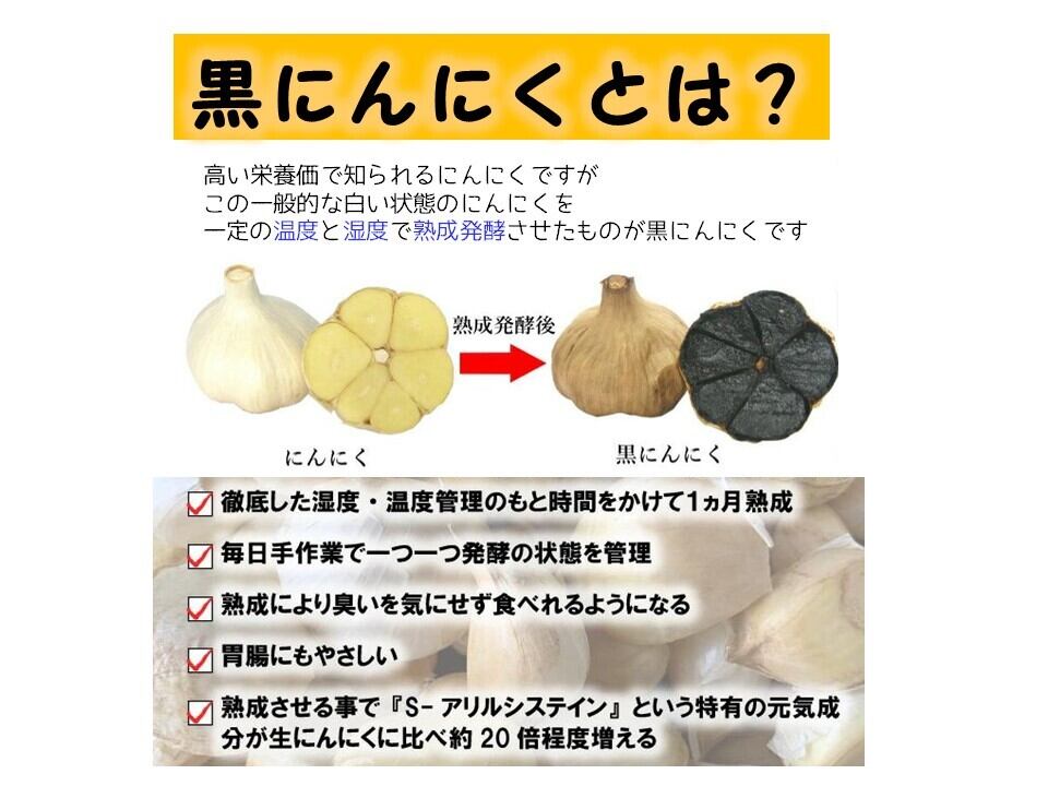 熊本県産の栄養豊富な熟成黒にんにくです!こちらの商品は、栄養価値の高い食品で、毎日のさまざまな料理に取り入れやすいと人気です。