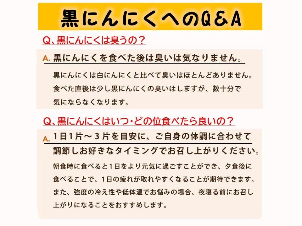 熟成黒にんにくは、厳選された国産のにんにくを丁寧に発酵させています。独特の甘みと旨味が凝縮され、料理の風味を引き立ててくれること間違いなしです。噛むほどに広がる特徴的な味わいは、多くの方に愛されています。また、そのままでも美味しく召し上がれますので、おやつ感覚でもお楽しみいただけます。